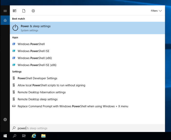 Após acessar sua VPS com os dados informados no e-mail, você irá na barra de pesquisa e vai pesquisar por "power" e selecionar a primeira opção: Power & sleep settings