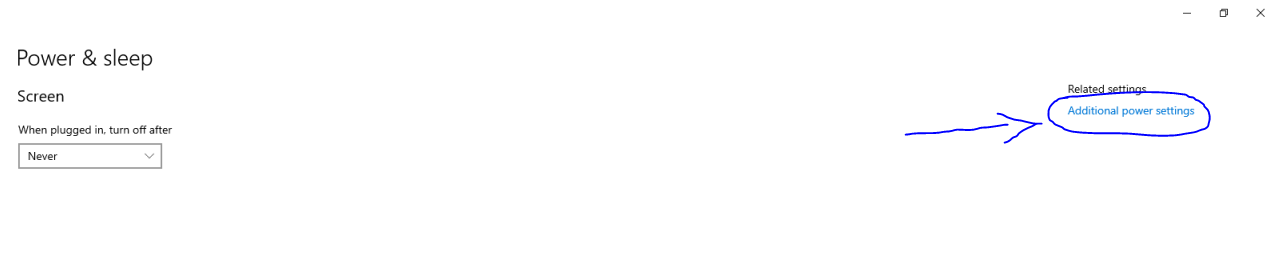 Após selecionar never, na mesma página no canto superior direito terá "Additional power settings"