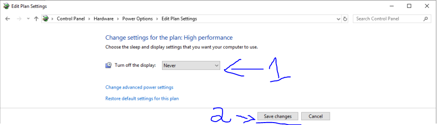 Após ir para a opção Change plan settings, você verá uma nova tela, siga estes passos: