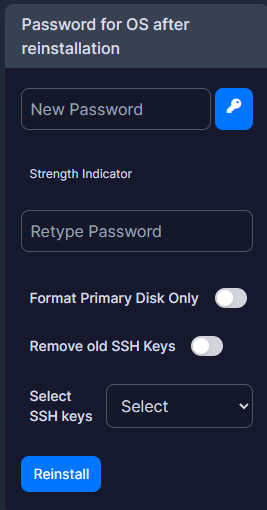 OBS: A senha tem que conter no mínimo de 12 a 16 caracteres, não pode conter símbolos como "# " & %" utilize esse site gere a senha para sua VPS Windows, não é necessário selecionar o "Format Primary Disk Only e nem o Remove old SSH Keys e nem selecionar um SSH keys".